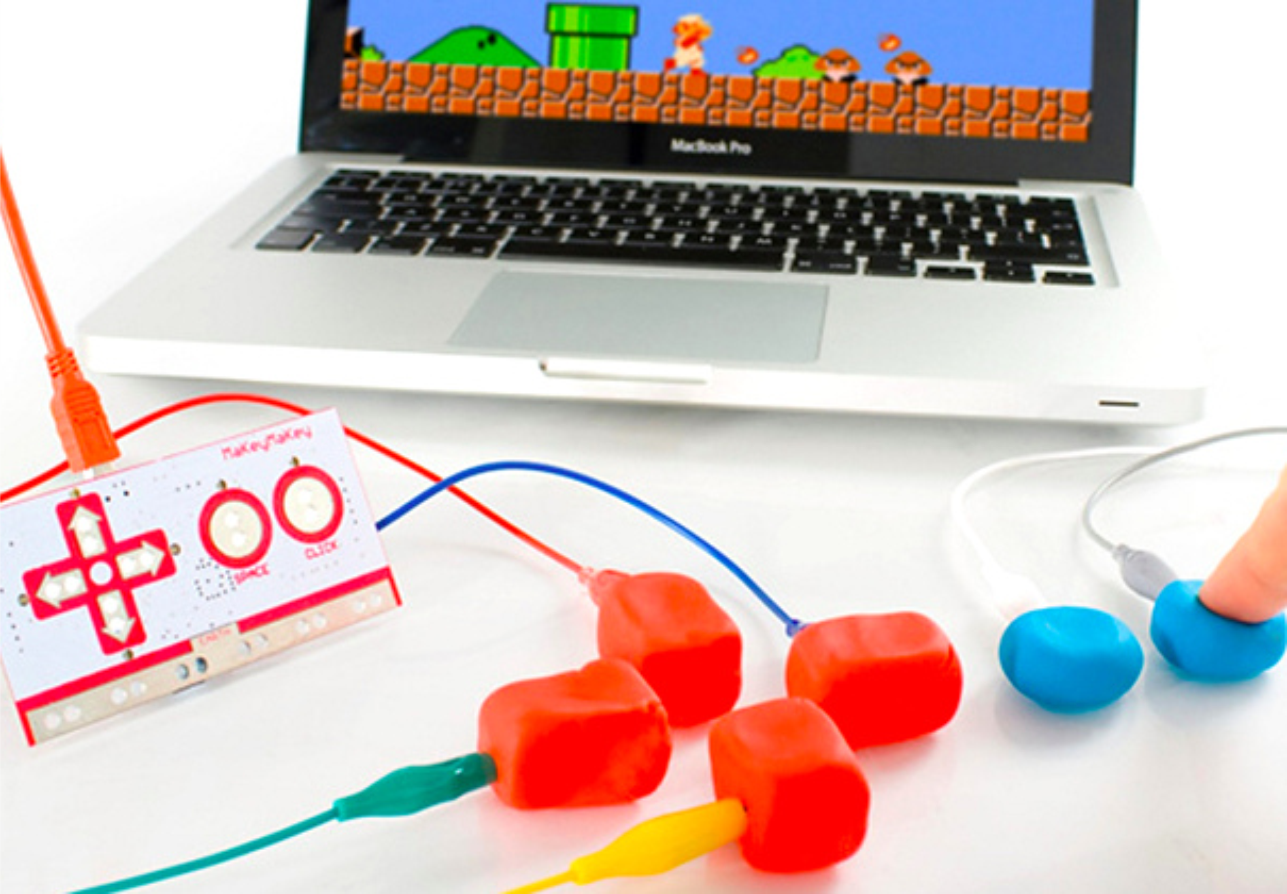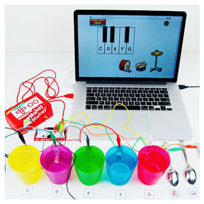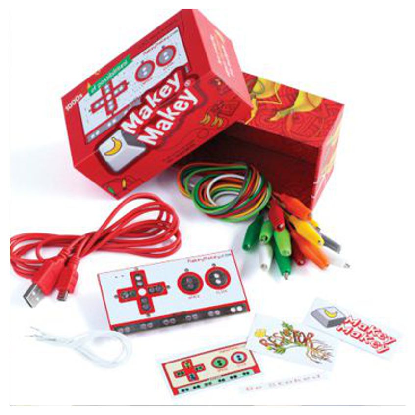 MaKey MaKey es un kit que nos permite encontrar formas creativas de interactuar con el ordenador, utilizando objetos cotidianos como si fuesen teclados o ratones. Este kit se programa con Scratch, una interfaz muy fácil de utilizar y que a su vez permite infinitas posibilidades de programación.